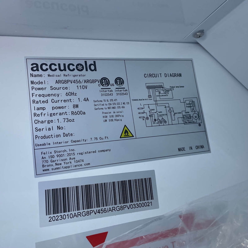 Accucold Pharmaceutical Refrigerator-New Open Box